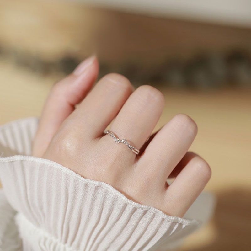 Fashion Wind Silver Ring for Women Twine Wave Simple Opening Rings
