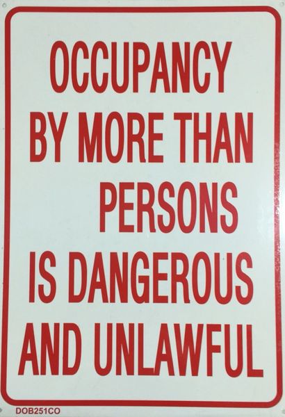 FIRE DEPARTMENT SIGN OCCUPANCY BY MORE THAN PERSONS IS DANGEROUS AND UNLAWFUL SIGN ALUMINUM SIGNS 14X20
