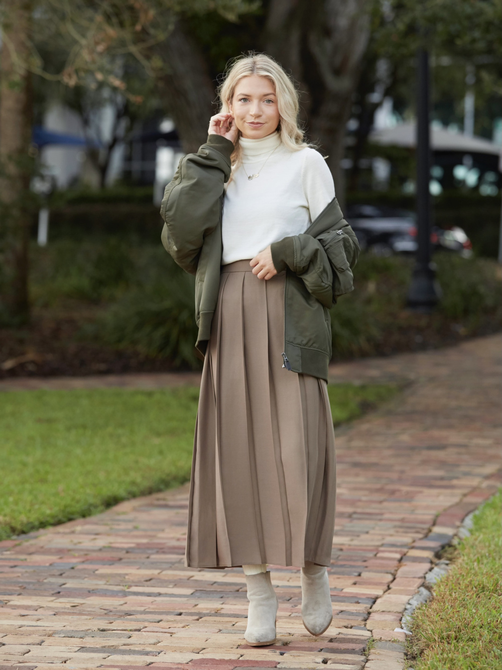 Check styling ideas for Wide Pleated Skirt MA 1 Blouson UNIQLO US