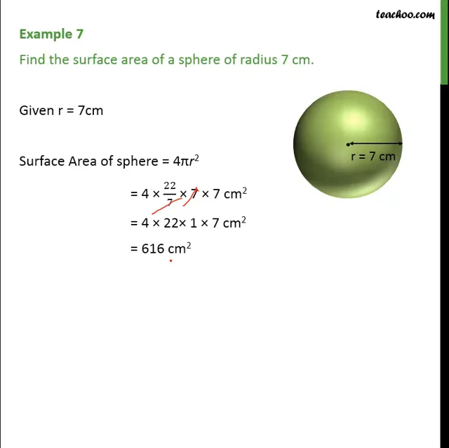Find the surface area of a sphere of radius 7cm 2025, Surface area of sphere is 676pi sq. cm. Find its radius 2025