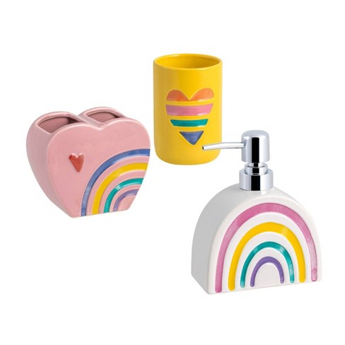 Bathroom set target 2025, 3pc Rainbow Hearts Kids Bathroom Accessories Set Allure Home 2025