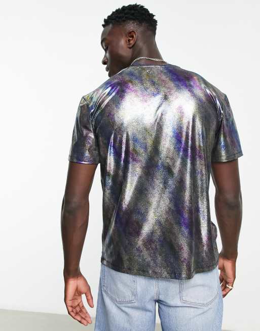 Topman oversized t shirt in painted metallic ASOS