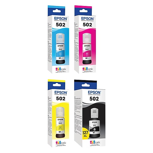 Epson T502 Black Cyan Magenta Yellow Standard Yield Ink Bottle 4 Pack T502BCMY VB