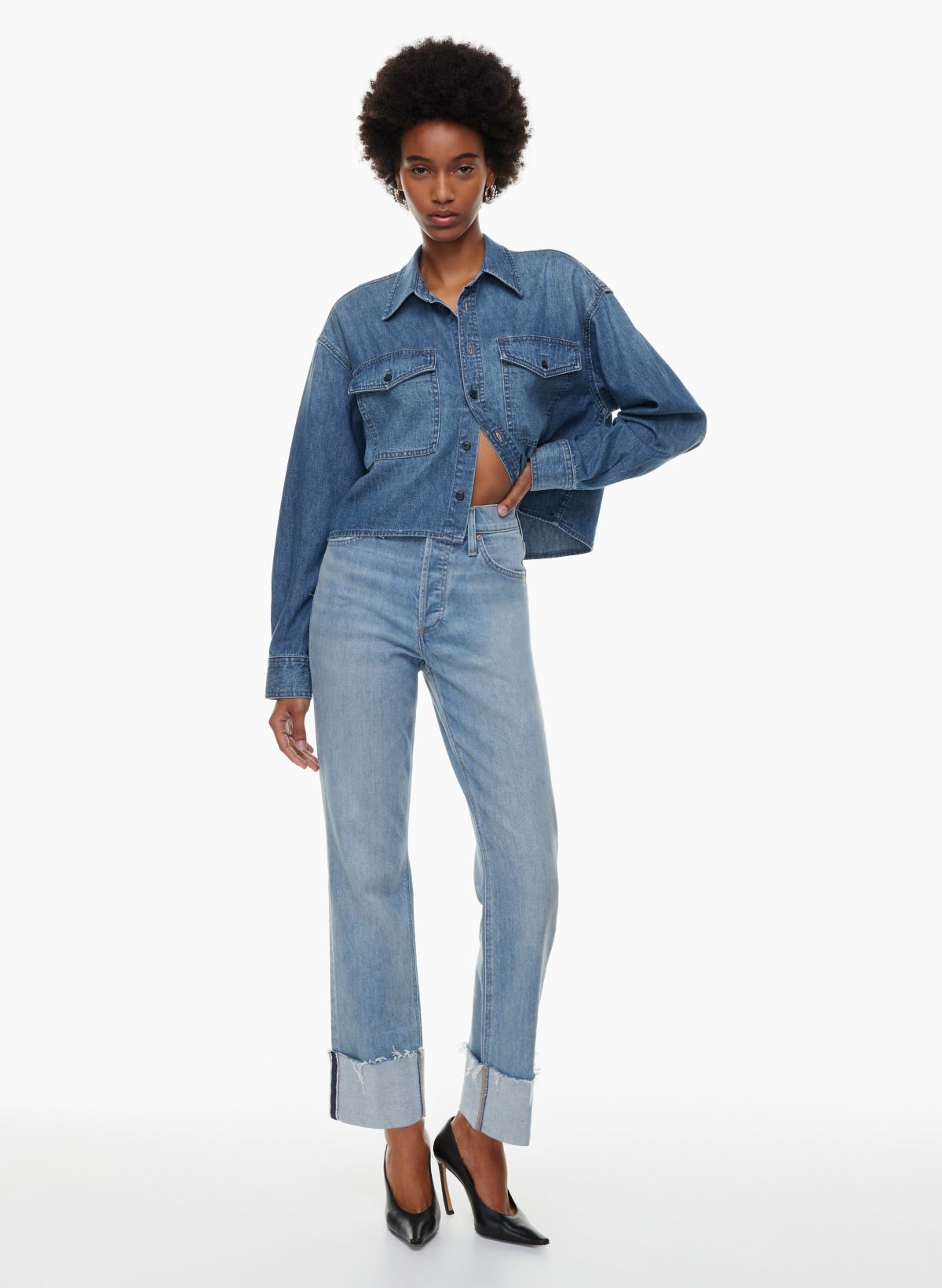 Denim Forum THE ARLO HI RISE CUFF JEAN Aritzia CA