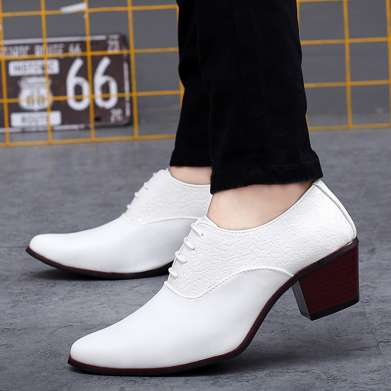 Heels shoes for men 2025, White High Heel Leather Shoes Men Increase Leather Shoes Pointed Toe Business Dress Shoes for Man 2025