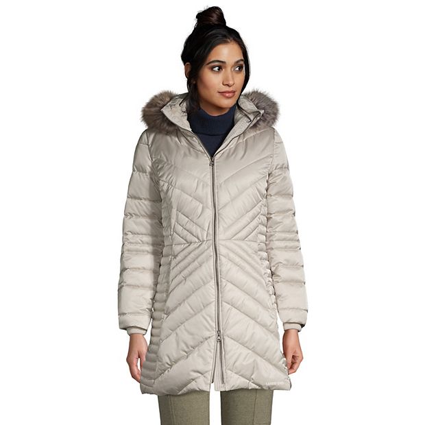 Women s Lands End Faux Fur Hood Long Down Winter Coat