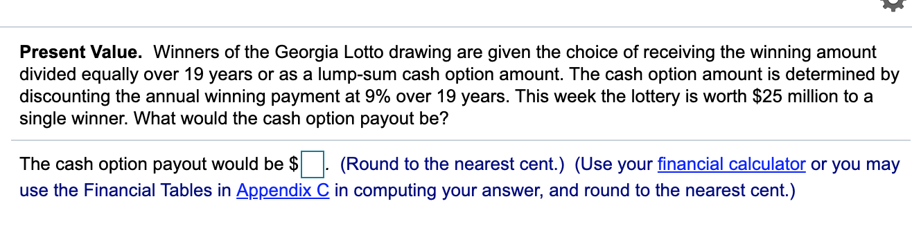 Lotto cash payout calculator 2025, Solved Present Value. Winners of the Georgia Lotto drawing Chegg 2025