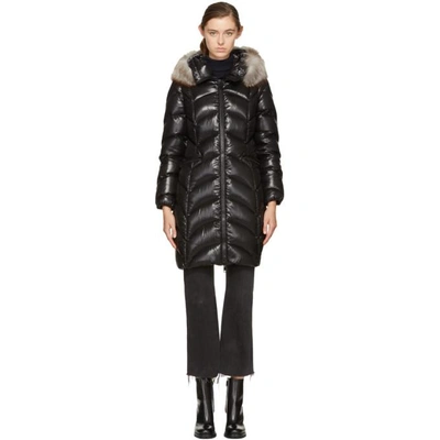 Moncler Albizia Fur Trim Laqu Nylon Down Coat In 999 Black
