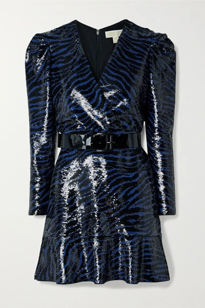 Michael Michael Kors Belted Sequined Jersey Mini Dress In Black