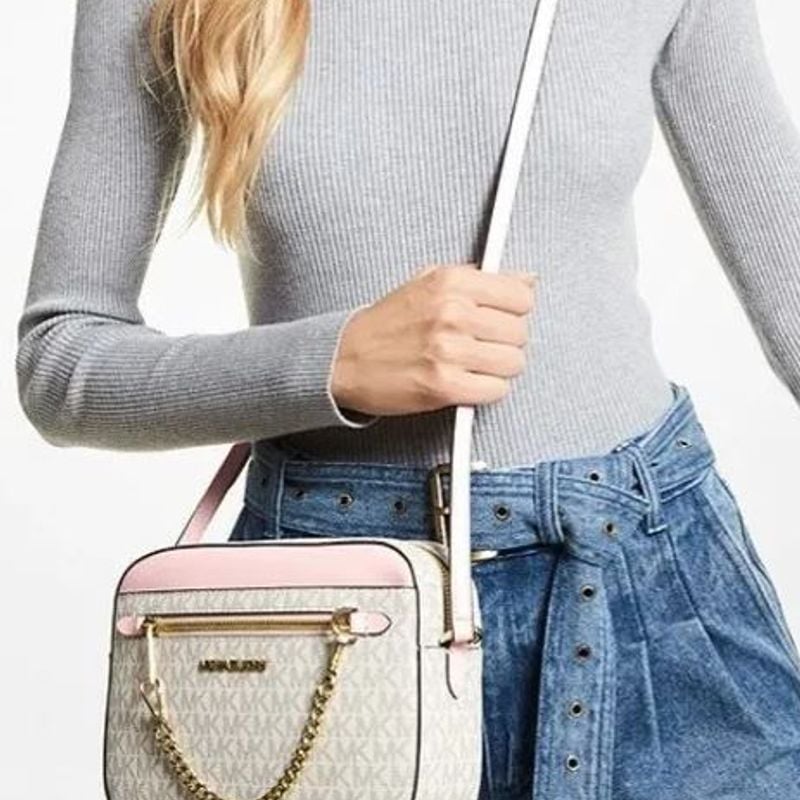 Bolsa Crossbody Rosa e Creme Monograma Michael Kors Bolsa de Ombro Feminina Michael Kors Nunca Usado 85134567 enjoei