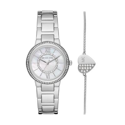 Michael Kors Stainless Steel Watch and Bracelet Gift Set MK1033