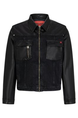 HUGO Regular fit jacket in denim and coated fabric