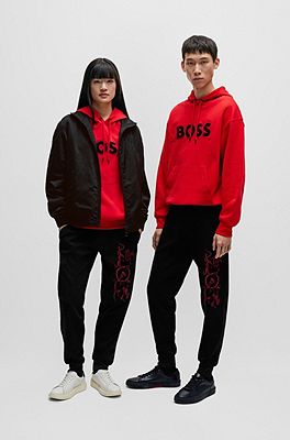BOSS Interlock cotton tracksuit bottoms with embroidered and