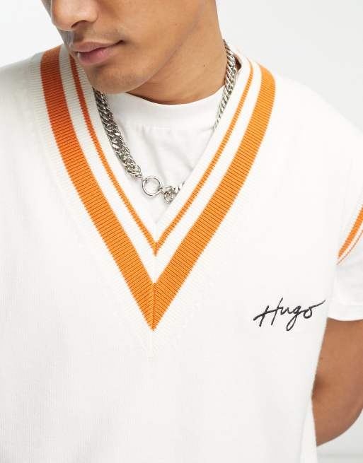 HUGO Spenco script logo oversized knitted vest in off white ASOS
