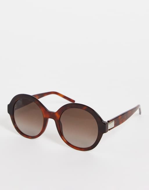 Hugo Boss thick frame round sunglasses in havana tort