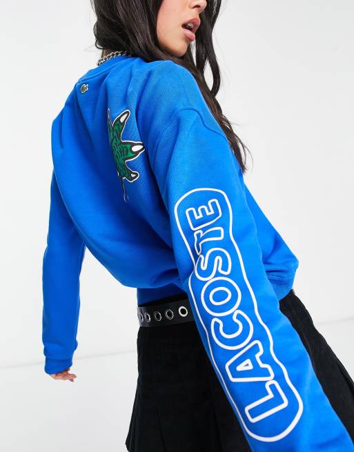 Lacoste long sleeve t shirt with large logo in blue ASOS