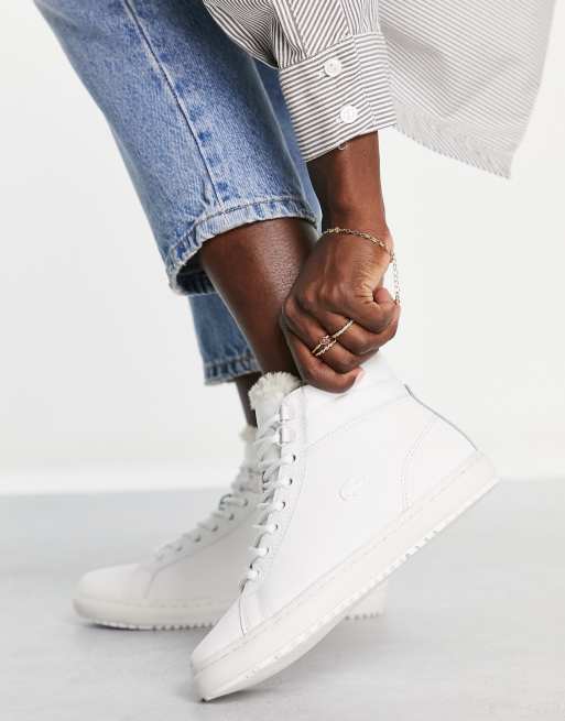 Lacoste straightset thermo hi top trainers in white