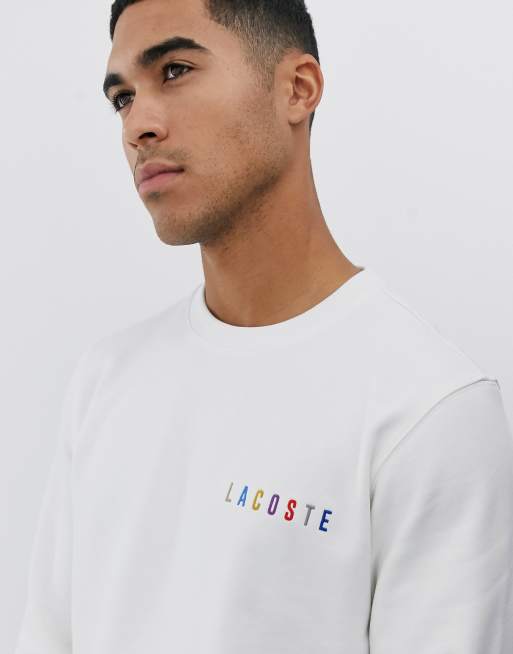 Lacoste rainbow text logo sweat in white