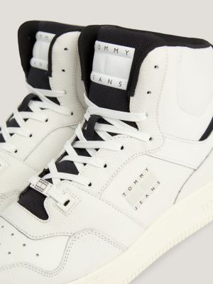 Leather Mid Top Basketball Trainers White Tommy Hilfiger