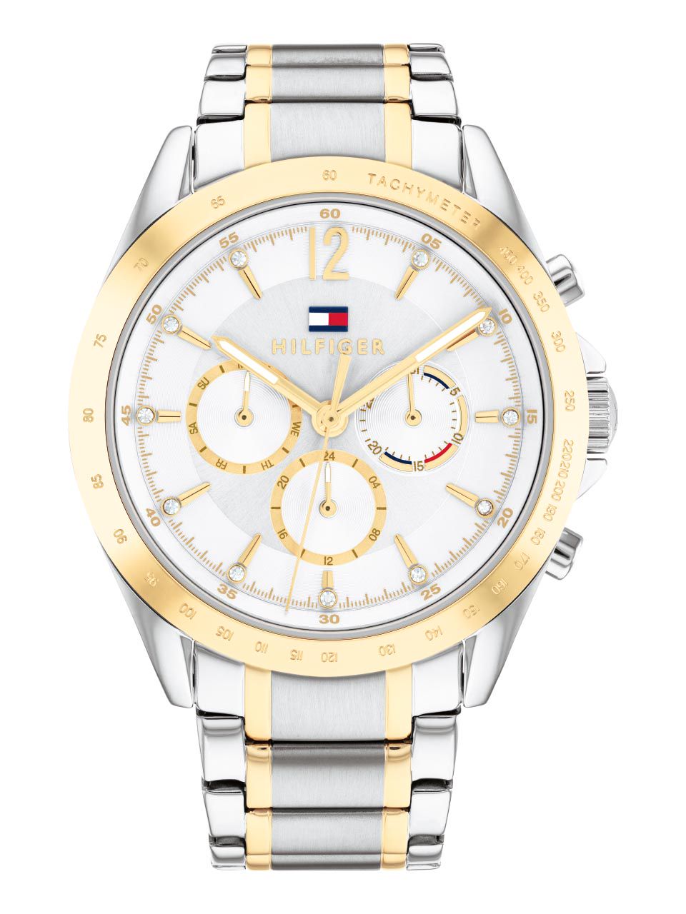 Crystal Embellished Two Tone Rubber Strap Watch White Tommy