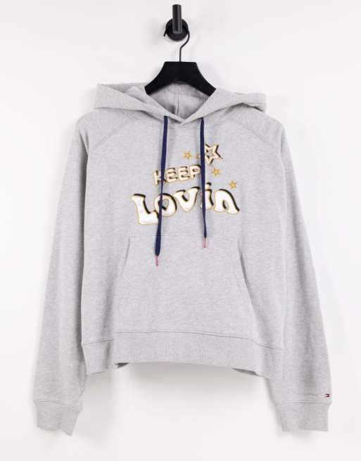 Tommy Hilfiger Gigi Hadid slogan hoodie in light grey heather