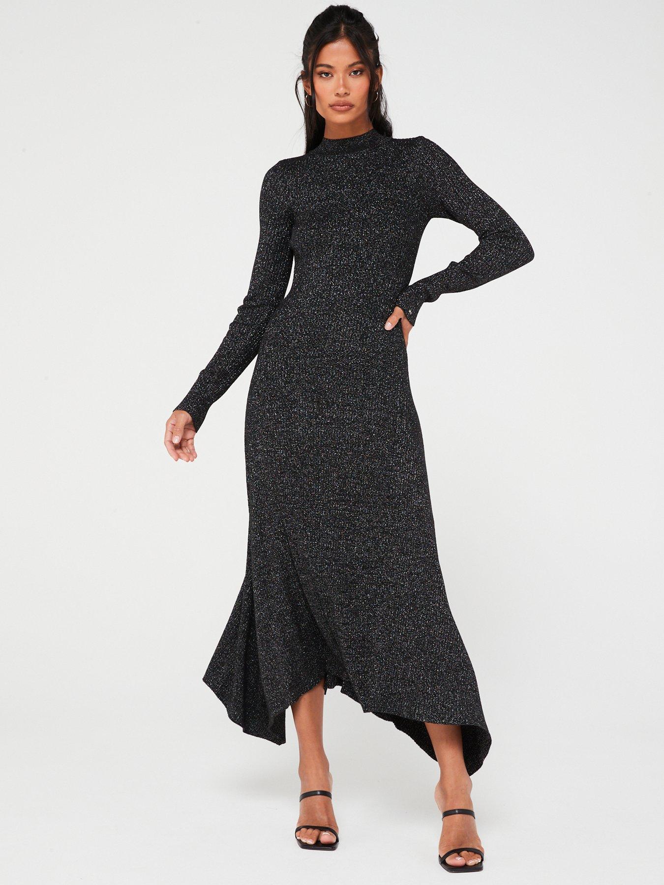 Lurex Fit Flare Maxi Dress Black