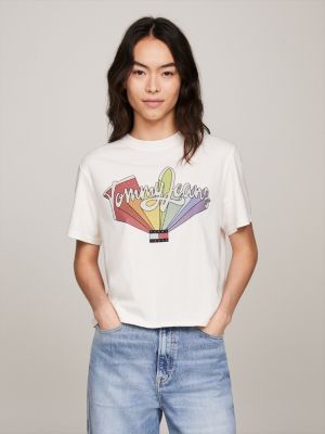Rainbow Logo Boxy Fit T Shirt White Tommy Hilfiger