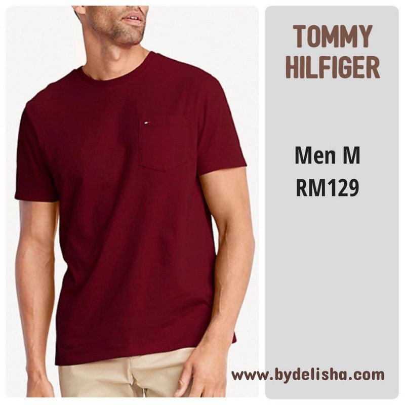 Tommy Hilfiger Men Plain T shirt Maroon Shopee Malaysia