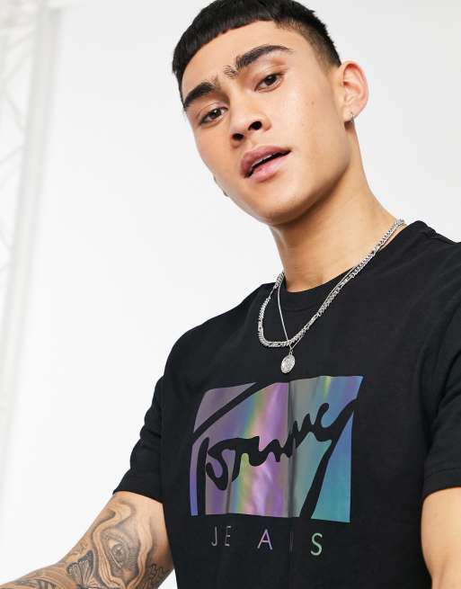 Tommy jeans metallic logo t shirt 2025, Tommy Jeans metallic script logo T shirt in black 2025