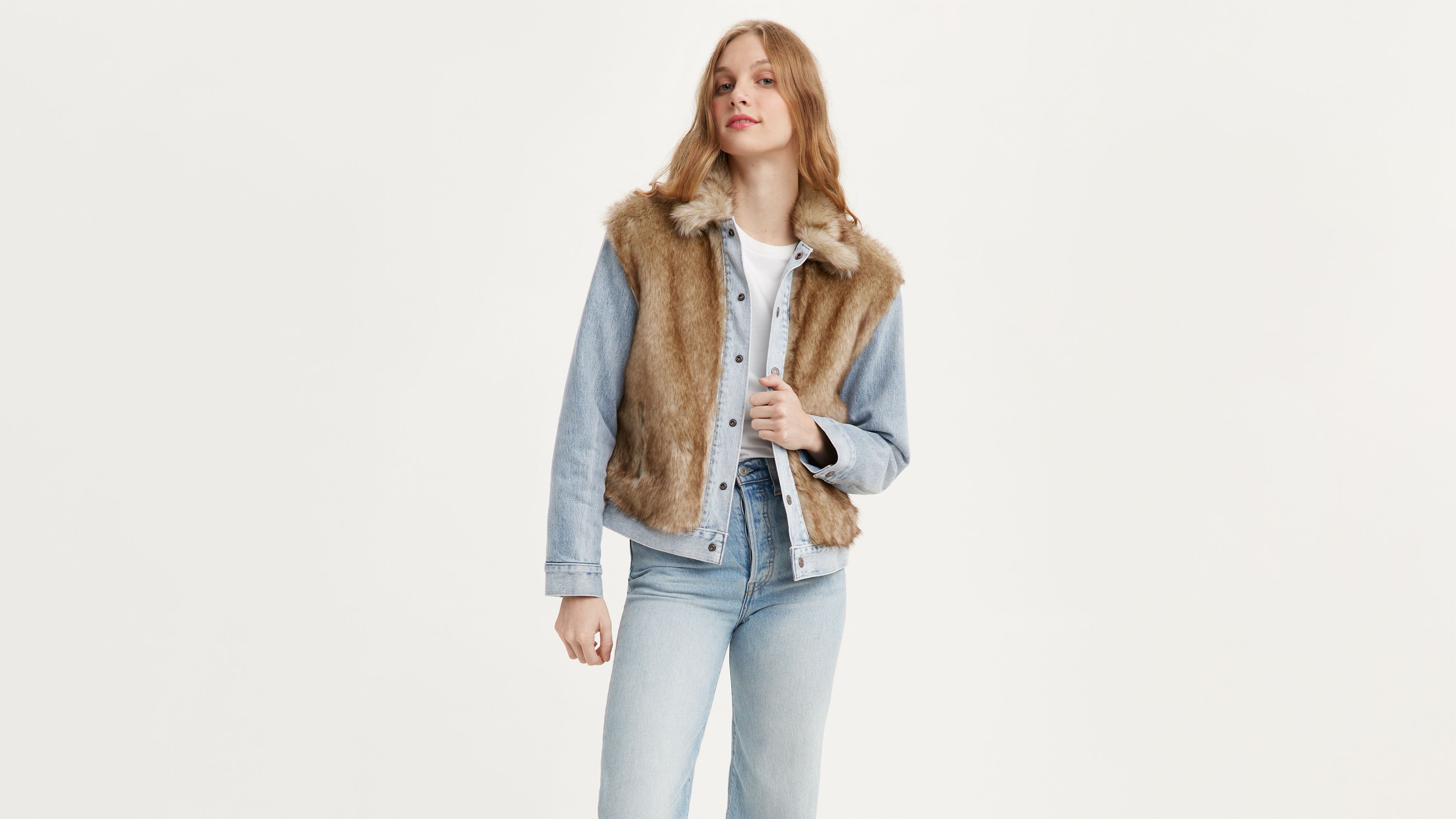 Oversized Fur Trucker Jacket Medium Wash Levi s US