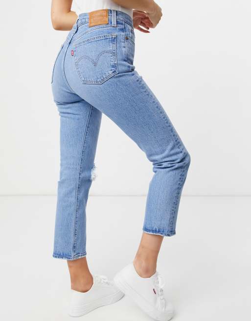 Levi s wedgie straight leg jeans with busted knee in light wash