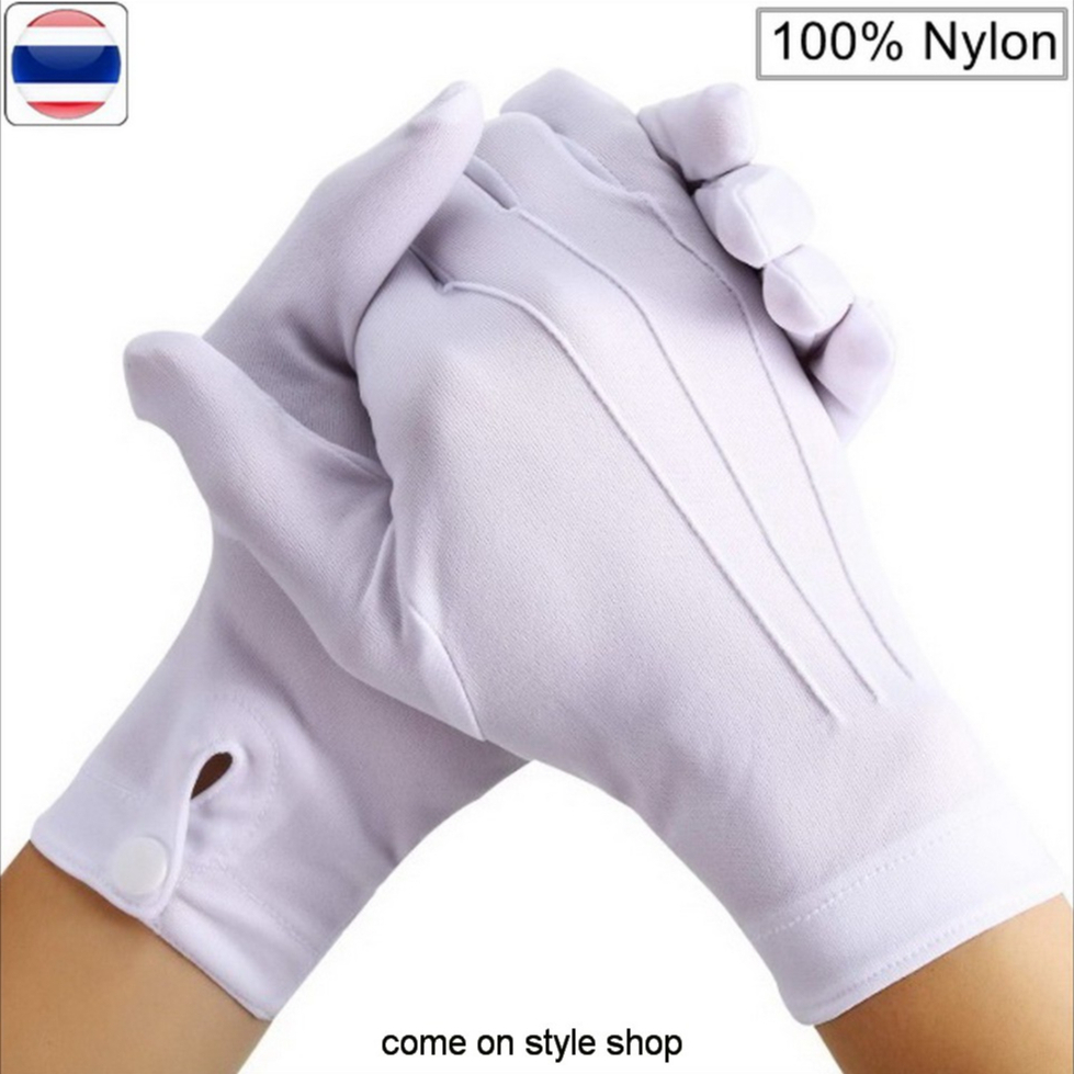 White Cloth Button Up Gloves Nylon Fabric 1 For formal Dance Cheering Sports Show Cosplay glove