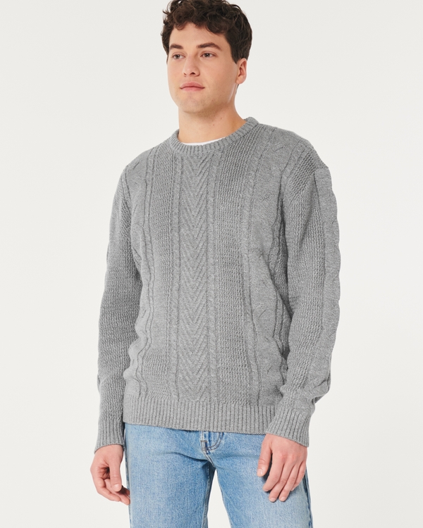 Men s Cable Knit Crew Sweater Men s Sale HollisterCo