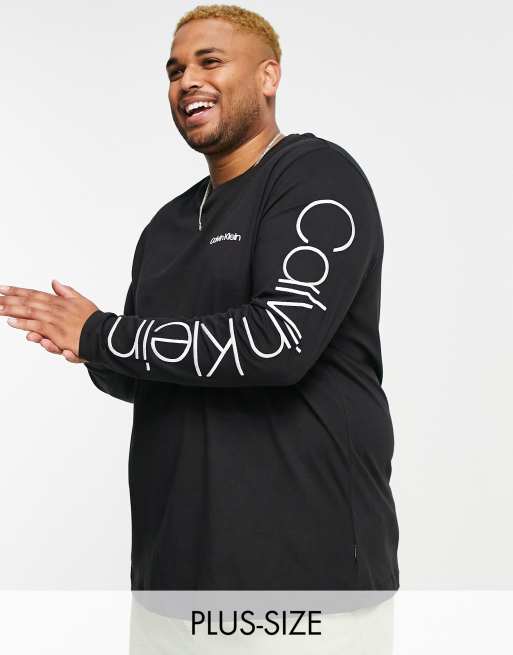 Calvin Klein Big Tall arm logo long sleeve t shirt in black