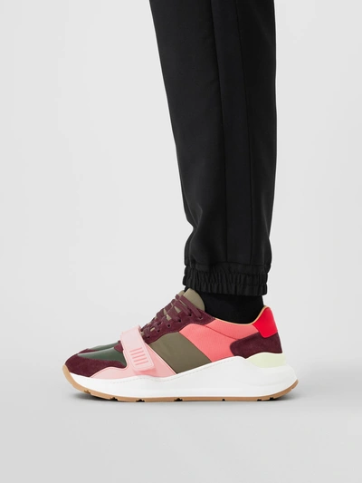 Burberry Colour Block Suede And Neoprene Sneakers In Bordeaux