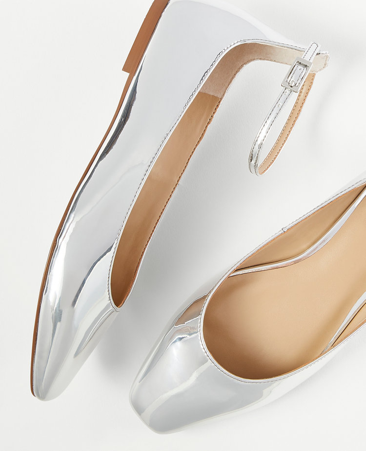 Silver metallic flats 2025, Metallic Ankle Strap Flats 2025