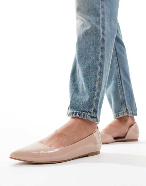 ASOS DESIGN Wide Fit Virtue d orsay pointed ballet flats in beige patent