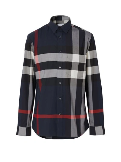 Burberry Navy Slim Somerton Check Shirt In Blue ModeSens