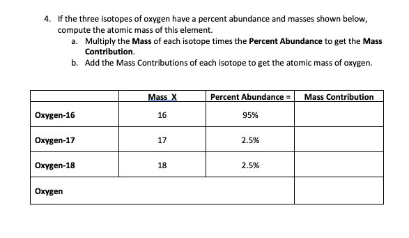 Solved 4. If the three isotopes of oxygen have a percent Chegg