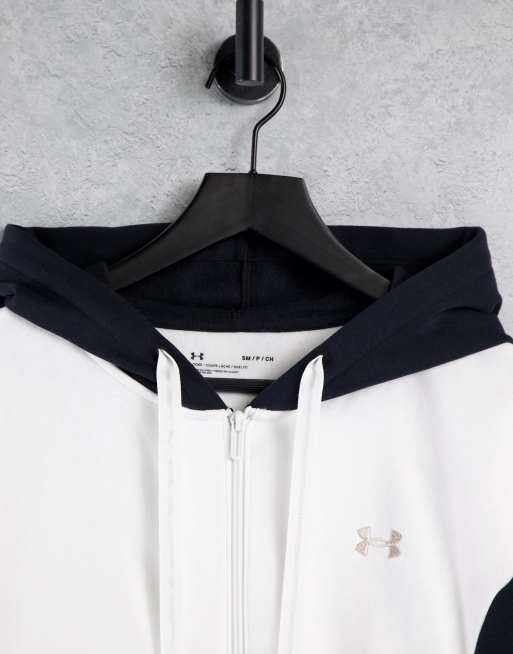 Under Armour rival fleece embroidered full zip hoodie in white