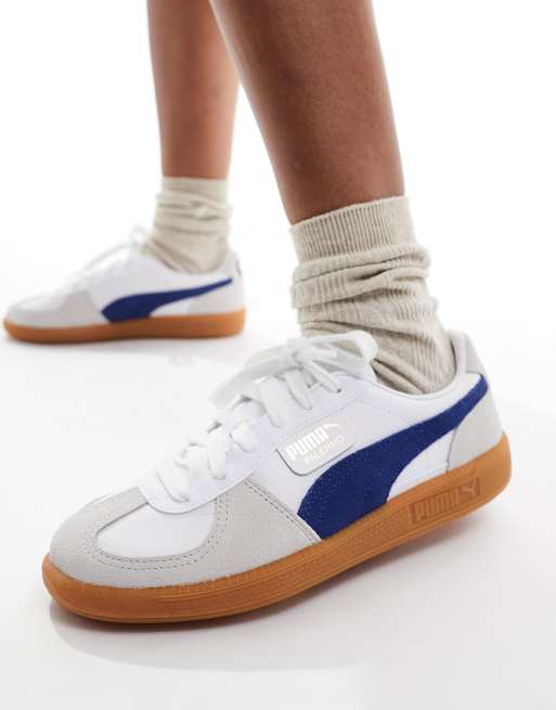 Puma Palermo leather trainers in white and blue ASOS