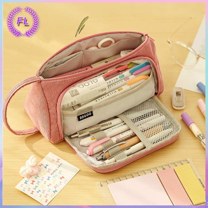 Corduroy Pencil Case Light Color Multi Slot Easy Handle Pen Bag