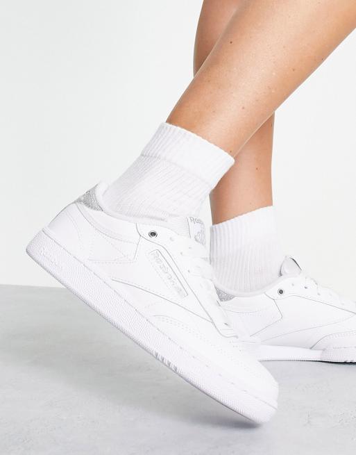 Reebok club C trainers in white and silver ASOS