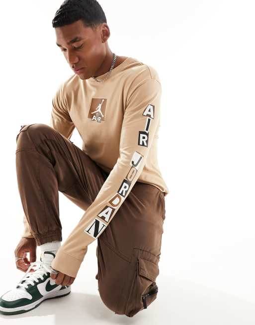Jordan graphic long sleeve t shirt in hemp brown