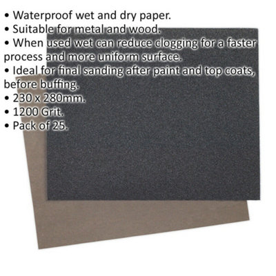 25 PACK Wet Dry Abrasive Sand Paper 230 x 280mm 1200 Grit