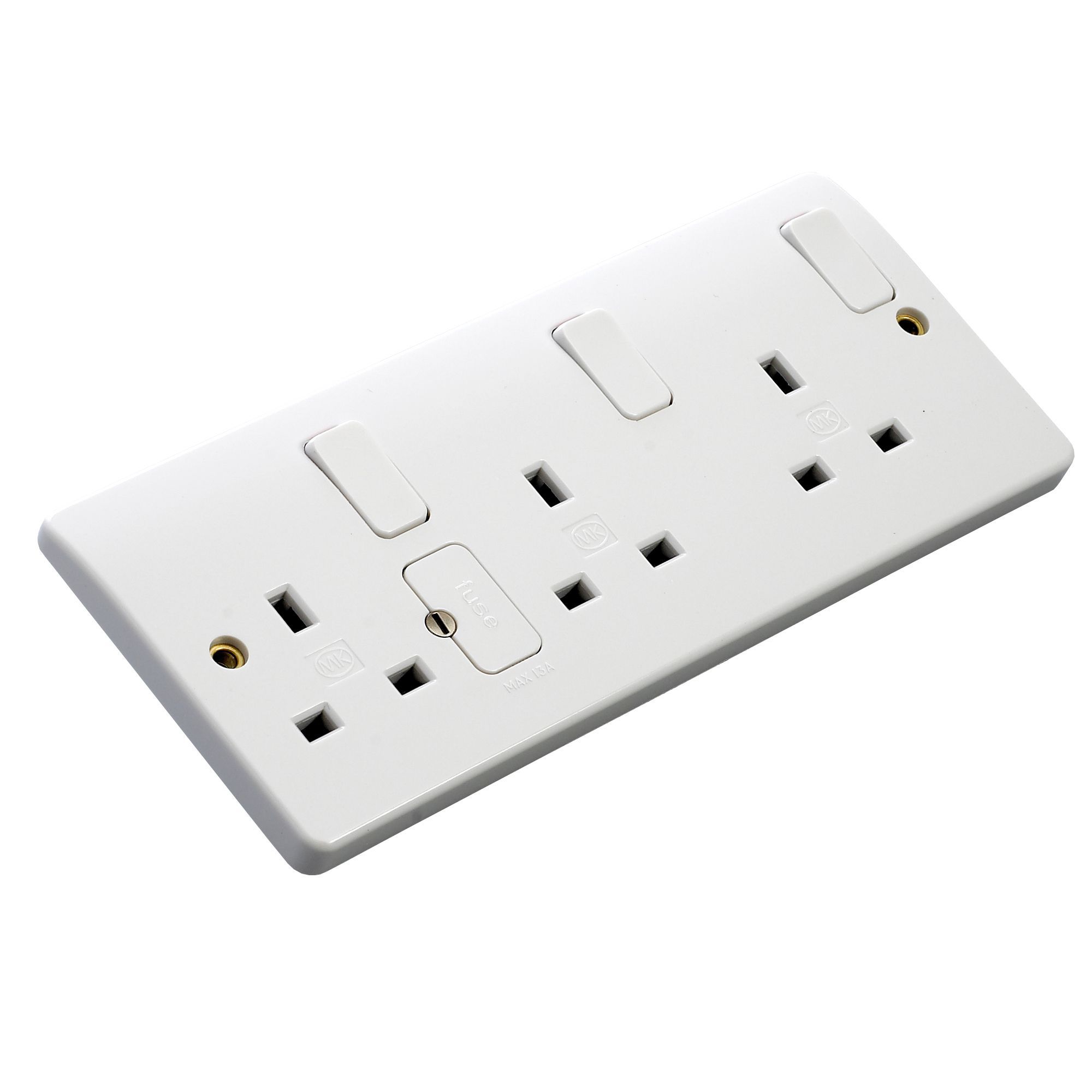MK White Triple 13A Switched Socket