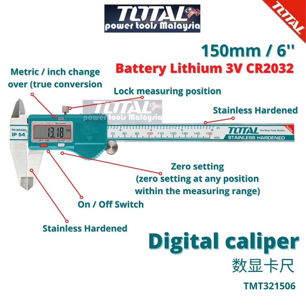 Total tools vernier calipers 2025, TOTAL IP54 Digital Caliper 3V TMT321506 Shopee Malaysia 2025