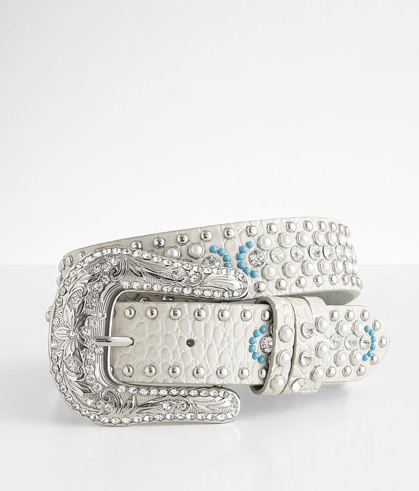 BKE Rhinestone Belt Women s Belts in White Buckle