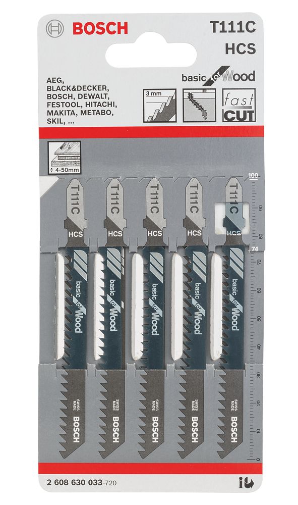 Bosch T111C Wood Jigsaw Blades 100mm 5 Pack Screwfix