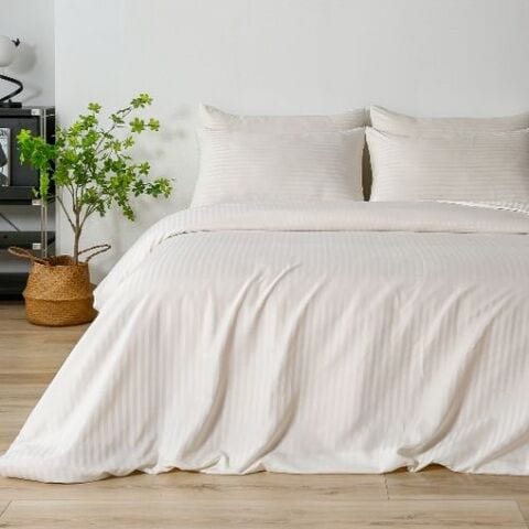 Luna Home Premium 6 Piece King Size Duvet Cover Satin Stripe Solid Powder White